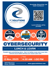 Cyber threats don’t take holidays off and neither should your security habits! Join us for this Lunch & Learn where we’ll unwrap tips to keep your data safe this season. We will provide food and drinks while you boost your cyber smarts!